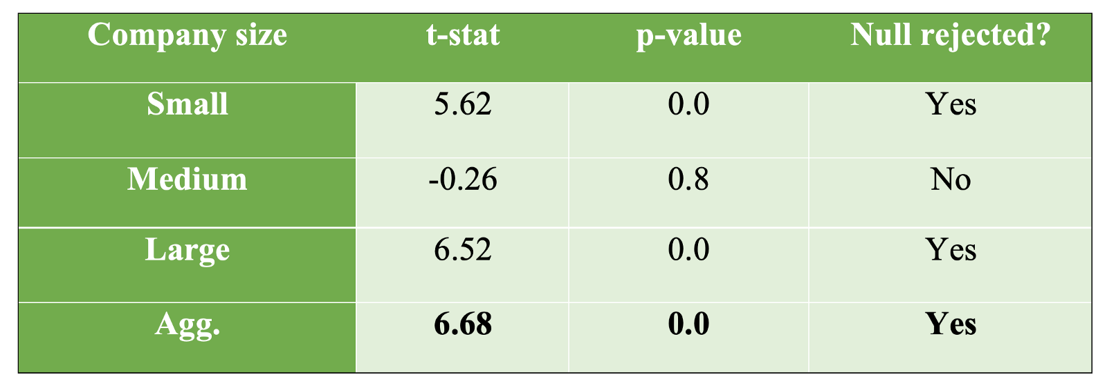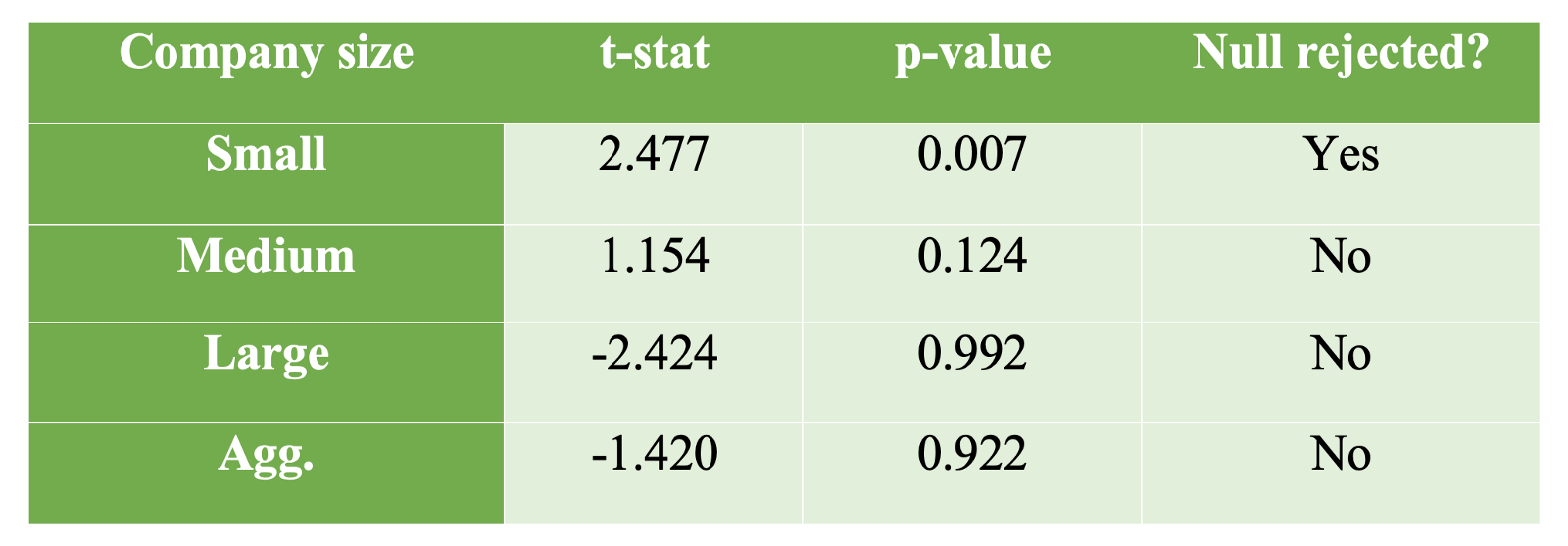 4. We may also run a paired t-test on the small companies to see if their behavior might change in the future.