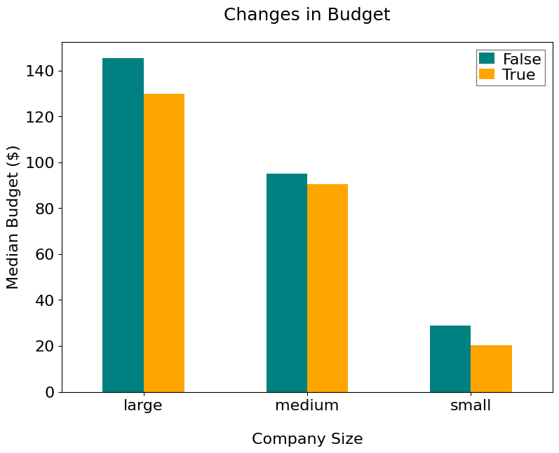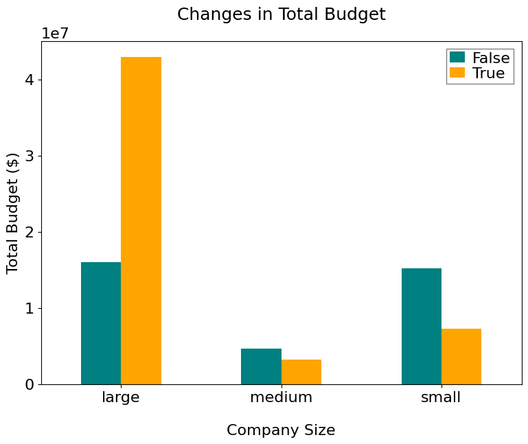 To make sure that this ‘new product phobia’ of small companies does not affect the total budget and revenue, we can compare the total budgets and revenue of the two groups.